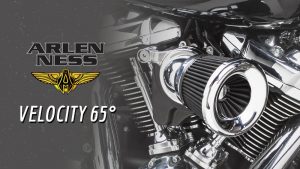 New from Arlen Ness, the Velocity 65 Air Cleaner Kit is a leap forward in high performance air cleaners. The 65 degree forward-facing angle, combined