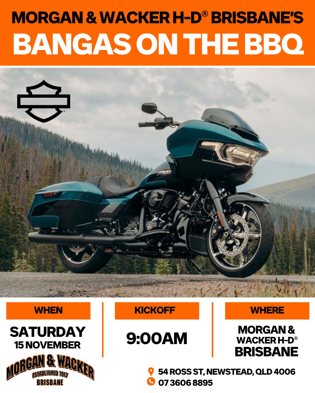 Morgan & Wacker – Bangas On The BBQ Bangas on the BBQ this SATURDAY at Morgan & Wacker H-D® Brisbane 🌭🌭 Come down to check out: – New Motorclothes that have just